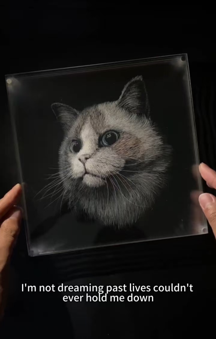 Exclusive Custom Art: We use special techniques (such as fine scratching, engraving, or high-light layering) to create a stunning pet portrait on a dark background. The clever use of light makes your pet seem to emerge from the darkness, with vivid eyes and hair rendered in exquisite detail, providing a strong visual impact and three-dimensionality.